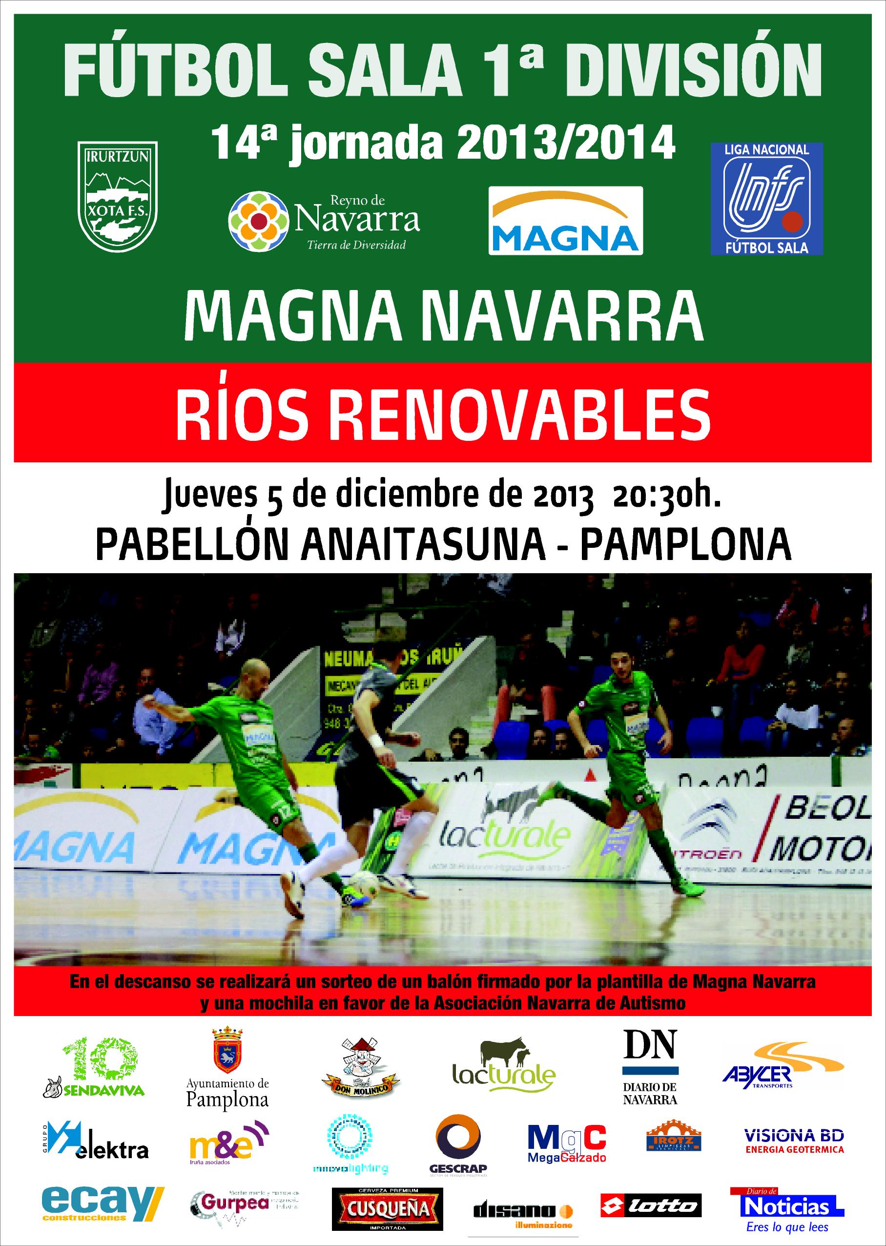 Jueves 5 de diciembre a las 20.30 horas. Este es el señalamiento del primer derbi navarro de la temporada. Un partido que promete emociones fuertes pues ambos equipos pueden jugarse su clasificación para la Copa de España en este enfrentamiento. Sólo un punto les separa en la tabla de clasificación aunque Magna jugará este viernes ante Marfil Santa Coloma en Arrosadía y Ríos Renovables visita la pista del F.C. Barcelona.