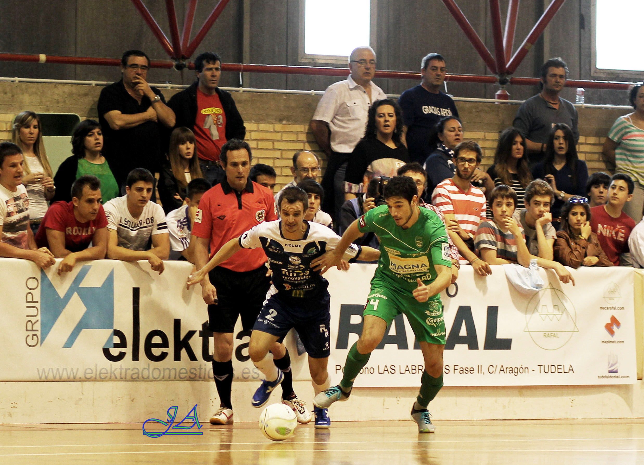 Magna Xota dio un golpe encima de la mesa en Tudela y consiguió una gran  victoria que le sirve para optar a la quinta posición final en la liga regular, un puesto que le enfrentaría en cuartos de final a Marfil Santa Coloma. Javi Eseverri en dos ocasiones, Carlitos y Roberto Martil marcaron los goles navarros. La primera mitad comenzó con gran intensidad por parte de ambos equipos en un ambiente ensordecedor que empujaba a los locales. Se adelantó Ríos Renovables por medio de Andresito que remató a la salida de un saque de esquina aunque no tardaría en empatar el incombustible capital de Magna Javi Eseverri que aprovechó un error de la salida de balón de los azules. A partir de ese momento, los de Imanol dieron un paso adelante y asediaron durante unos minutos la portería de Molina que salvó a su equipo en varias ocasiones claras. Cuando más apretaba Magna, volvió a marcar Andresito y Palmas hizo el 3-1 a falta de 2 segundos para el descanso. No reflejaba ese marcador lo que había ocurrido en la pista y el choque se ponía cuesta arriba para el conjunto de Imanol Arregui.