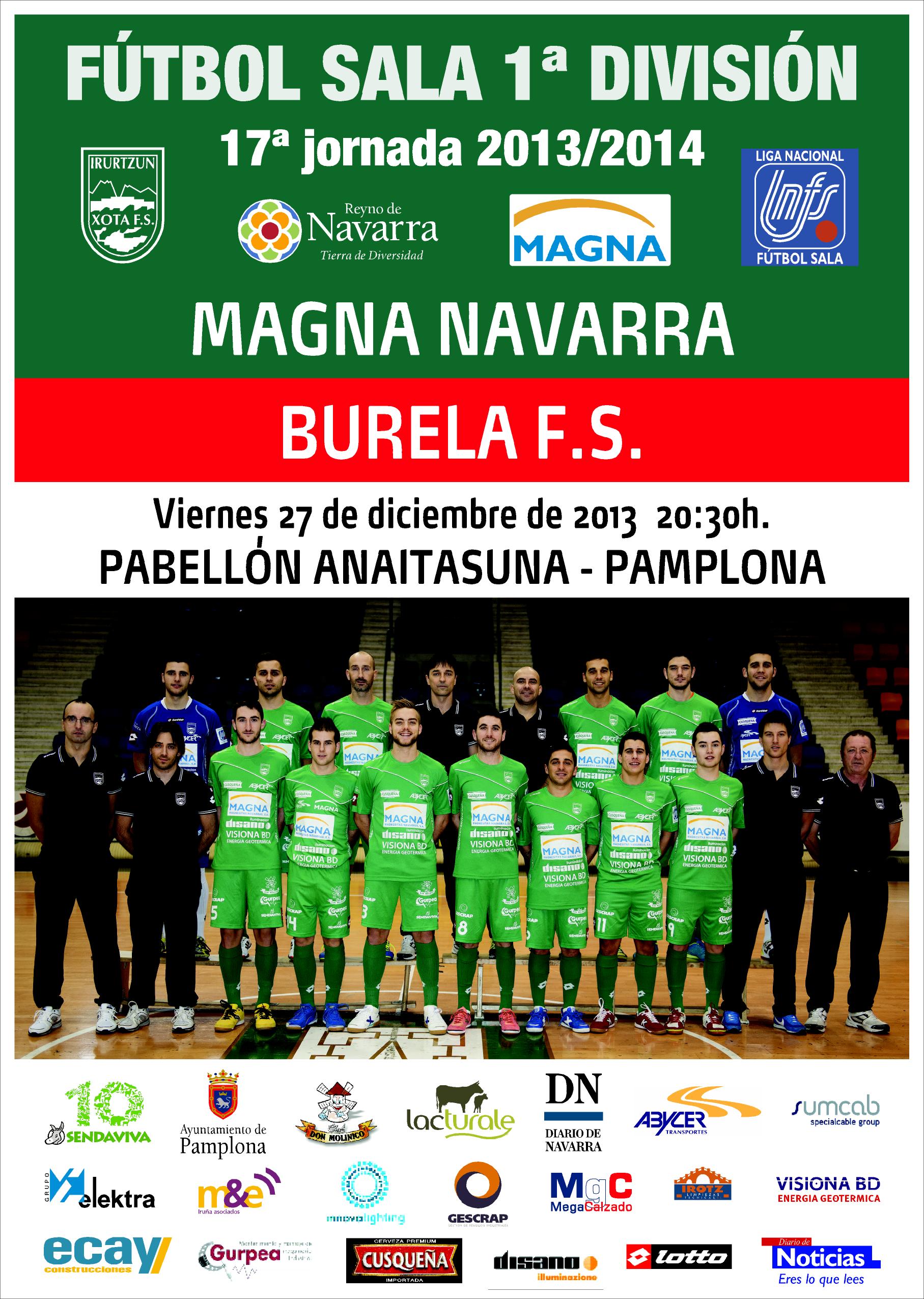 No hay descanso en Navidad. Atractivo partido el que se va a disputar este viernes en el Pabellón Anaitasuna de Pamplona entre Magna Xota y un potente Burela FS que tiene en sus filas jugadores tan contrastados como Matamoros, Burrito, Mimi, Isi o Antoñito. El choque dará comienzo a las 20.30 horas y los hombres de Imanol Arregui tratarán de ampliar la excelente racha de buenos resultados que han encadenado después de perder contra el F.C. Barcelona el 12 de noviembre en el Palau Blaugrana. Desde entonces, los navarros han conseguido cuatro victorias y un empate que le han aupado hasta la quinta posición empatado a puntos con Marfil Santa Coloma.