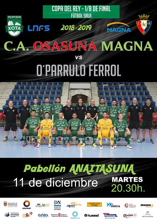 Segundo partido oficial que se disputa de forma consecutiva en el Pabellón Anaitasuna. Será este martes 11 de diciembre a partir de las 20.30 h, en octavos de final de la Copa del Rey y nos visita un O´Parrulo Ferrol que tiene en sus filas a Jesulito, el pequeño jugador gaditano que dejo un fantástico sabor de boca en los años que militó como jugador de nuestro club. Se hará muy extraño ver un partido de Copa del Rey en Pamplona, pues habitualmente nos ha “tocado” jugar como visitante todas las temporadas en esta competición. Importante choque que dará al ganador la clasificación para cuartos de final en un año en que cambia el formato pues se jugará una Final Four entre los cuatro clubes que se clasifiquen para las semifinales.