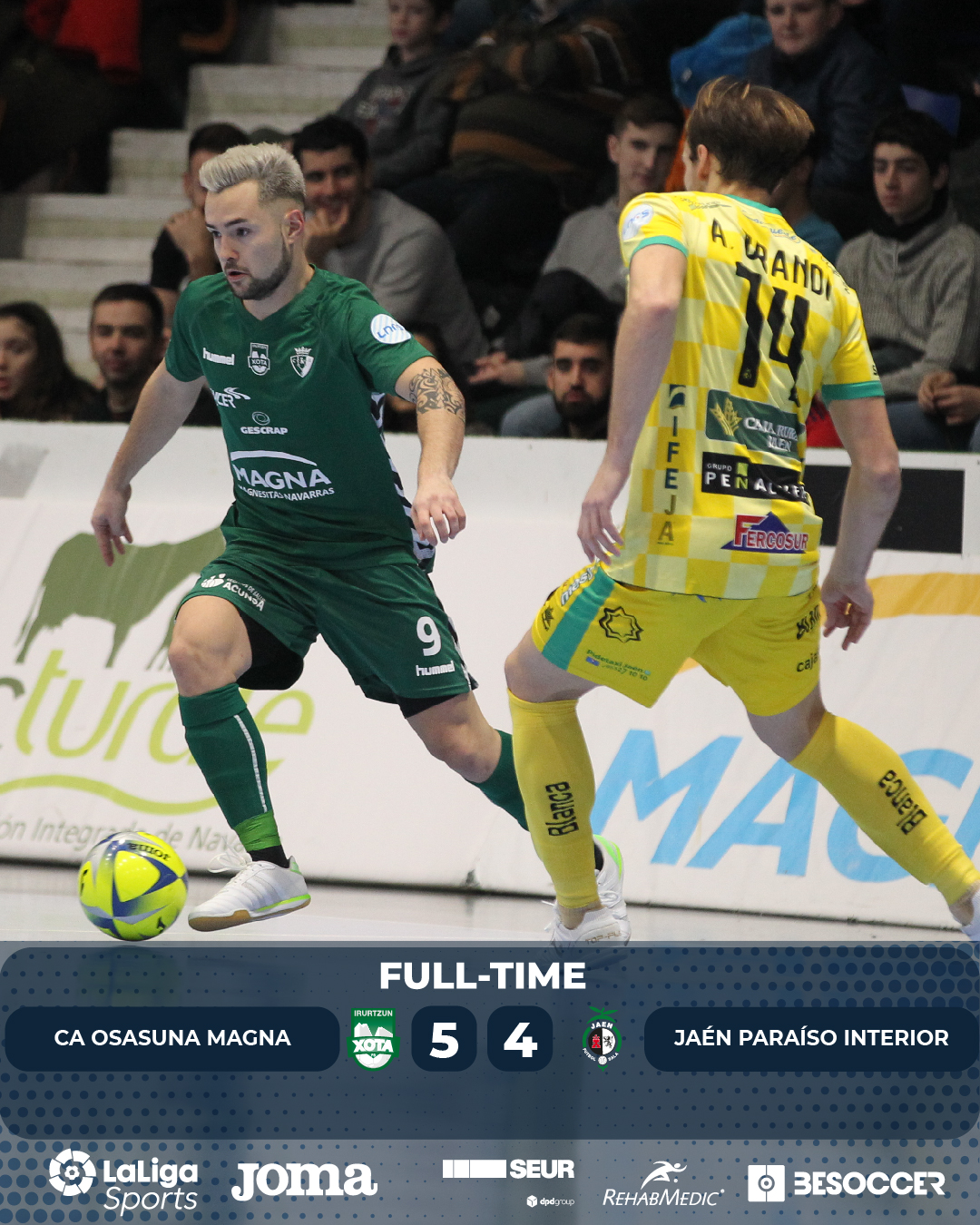 Dani Rodríguez empleó a Mauricio como portero-jugador para intentar recortar más distancias a falta de seis minutos para el final. Algo que surtió efecto a última hora ya que Piqueras puso el 5-4 definitivo a falta de 12 segundos para el final que acerca a los navarros a la Copa de España Málaga 2020.