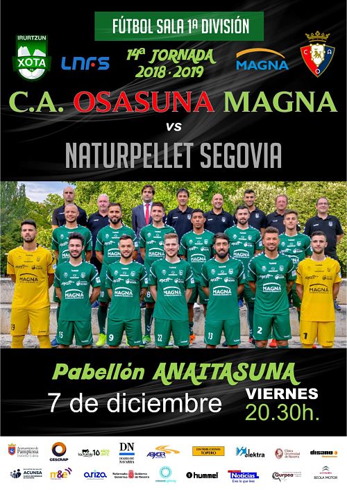 C.A. Osasuna Magna puede certificar este viernes su decimocuarta clasificación para la Copa de España en las 21 temporadas consecutivas que el club navarro lleva militando en la Primera División. El partido de liga, que se juega en el Pabellón Anaitasuna a las 20.30 horas y que le va a enfrentar a un necesitado Naturpellet Segovia, cobra una importancia vital pra ambos conjuntos. Los tres puntos que se van a poner en juego en el choque, serán decisivos de cara a que los verdes puedan participar en una nueva edición de la competición más mediática de la LNFS. Los segovianos llegan a Pamplona como colistas y con la urgencia de sumar y llegan con el aval de su buen rendimiento como visitantes, habiendo incluso conseguido la victoria en la pista de un grande, ElPozo Murcia. No debe caber el exceso de confianza en la plantilla de Imanol Arregui, aunque la trayectoria del equipo en los últimos partidos esté siendo muy positiva.