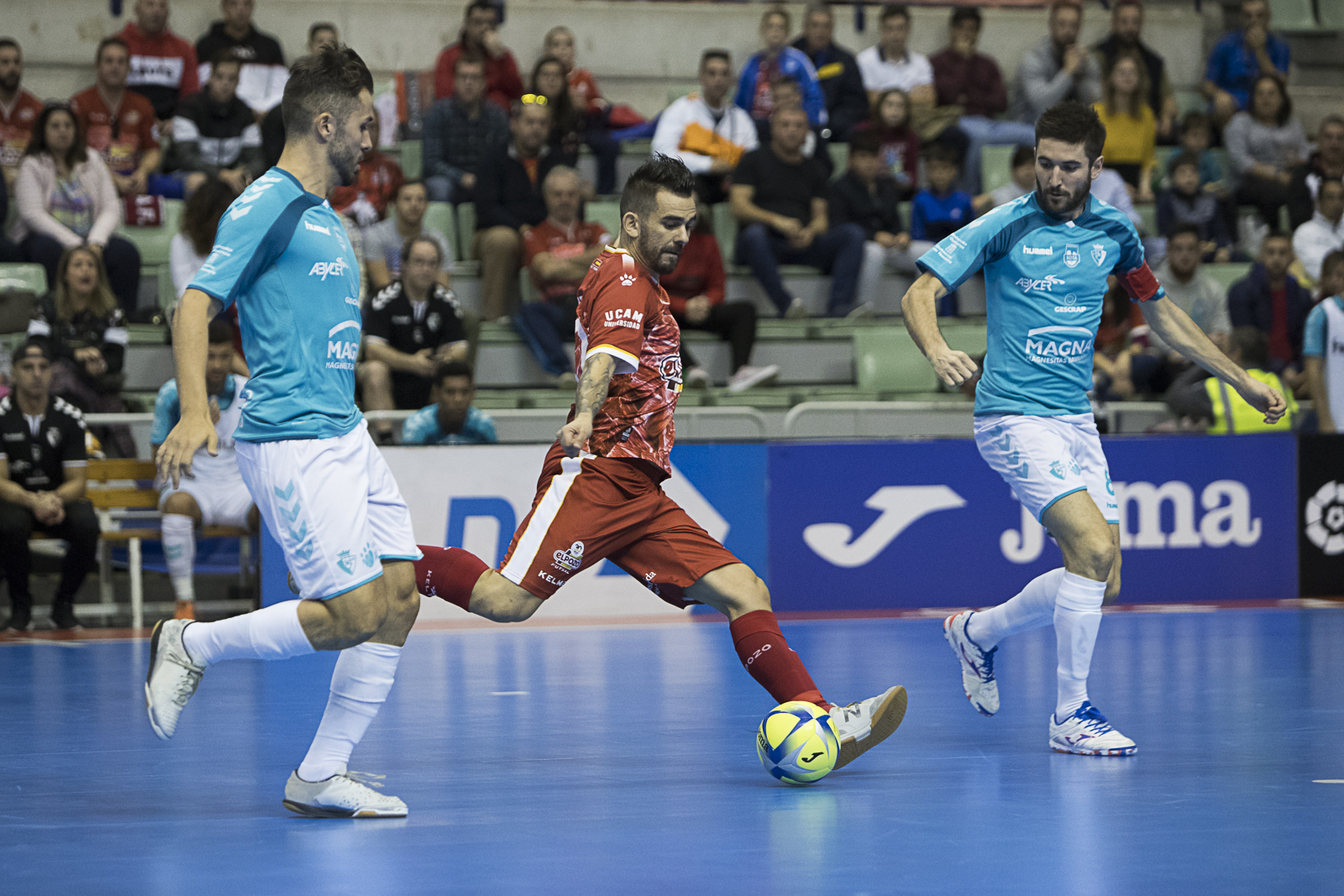 Por su parte, ElPozo Murcia Costa Cálida viaja a Pamplona con la intención de mantener la racha positiva de resultados que les ha permitido reducir la distancia con el tercer clasificado. Con dos victorias y un empate, la escuadra dirigida por Diego Giustozzi buscará en Anaitasuna conseguir la victoria ante Osasuna Magna, como ya hizo en la octava jornada de Liga por un ajustado cinco a cuatro en un partido marcado por la polémica en una acción que propició el triunfo charcutero, después de la no concesión de un gol legal de un Araça cuya participación con Osasuna Magna en la cita de este viernes es dudosa, aunque se encuentra bastante recuperado de su neumonía. Es duda también Rafa Usín que sufrió una contusión en la rodilla ante Levante Ud aunque también se espera su participación.