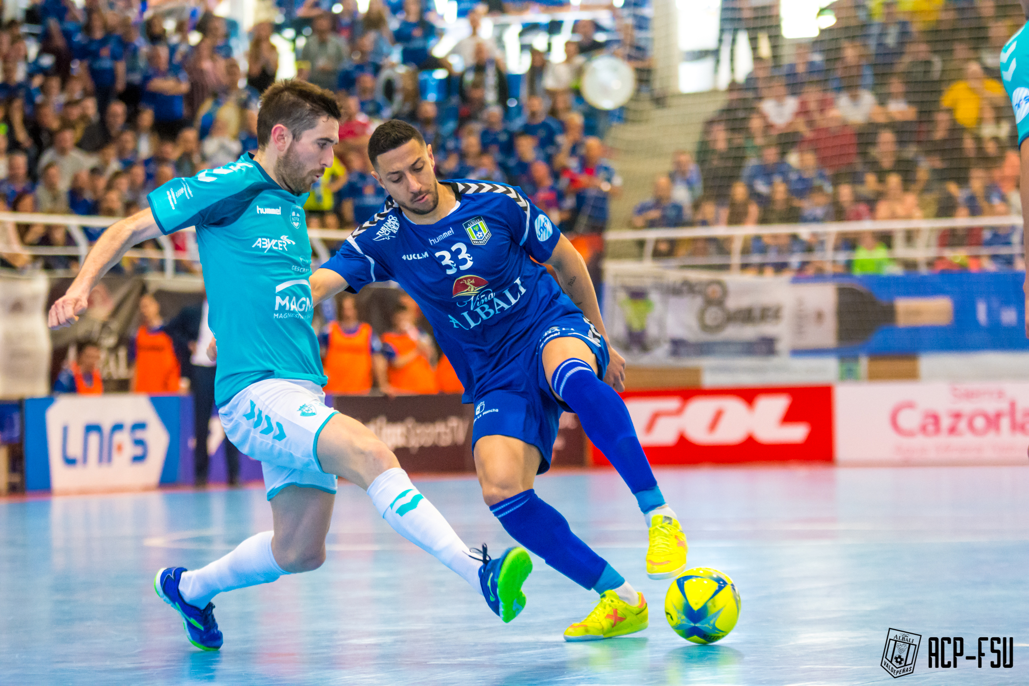 En la segunda mitad, Osasuna Magna imprimió una marcha más al encuentro para ir en busca del empate. A los dos minutos, Mancuso puso en aprietos a Edu, que solventó bien el disparo del brasileño. Un minuto después, fue Rafa Usín el que avisó con una jugada personal en la que finalmente disparó por encima de los tres palos. En el ecuador del segundo tiempo, el acoso del conjunto de Imano Arregui se acentuó. Primero Dani Saldise y Eric Martel, con sendos lanzamientos, obligaron a Edu a erigirse como el salvador de la parroquia manchega. En un contragolpe de los de Imanol Arregui, Eric Martel enganchó a la perfección el balón al primer toque para establecer el dos a dos en el luminoso. El arquero portugués de los locales salvó en varias ocasiones a los suyos, que, tras encajar el tanto del empate, sufrieron las acometidas de los rivales.